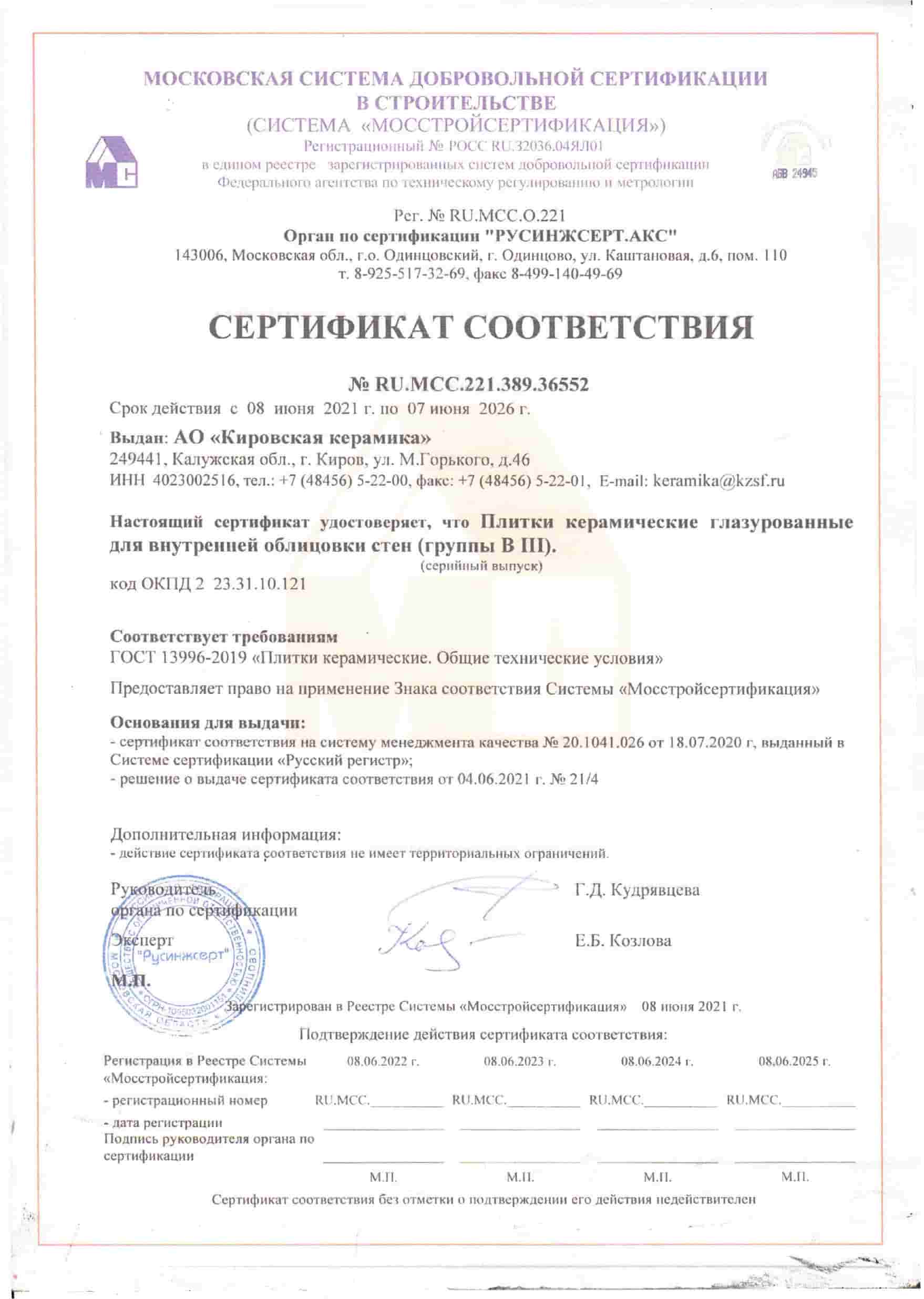 Сертификаты соответствия