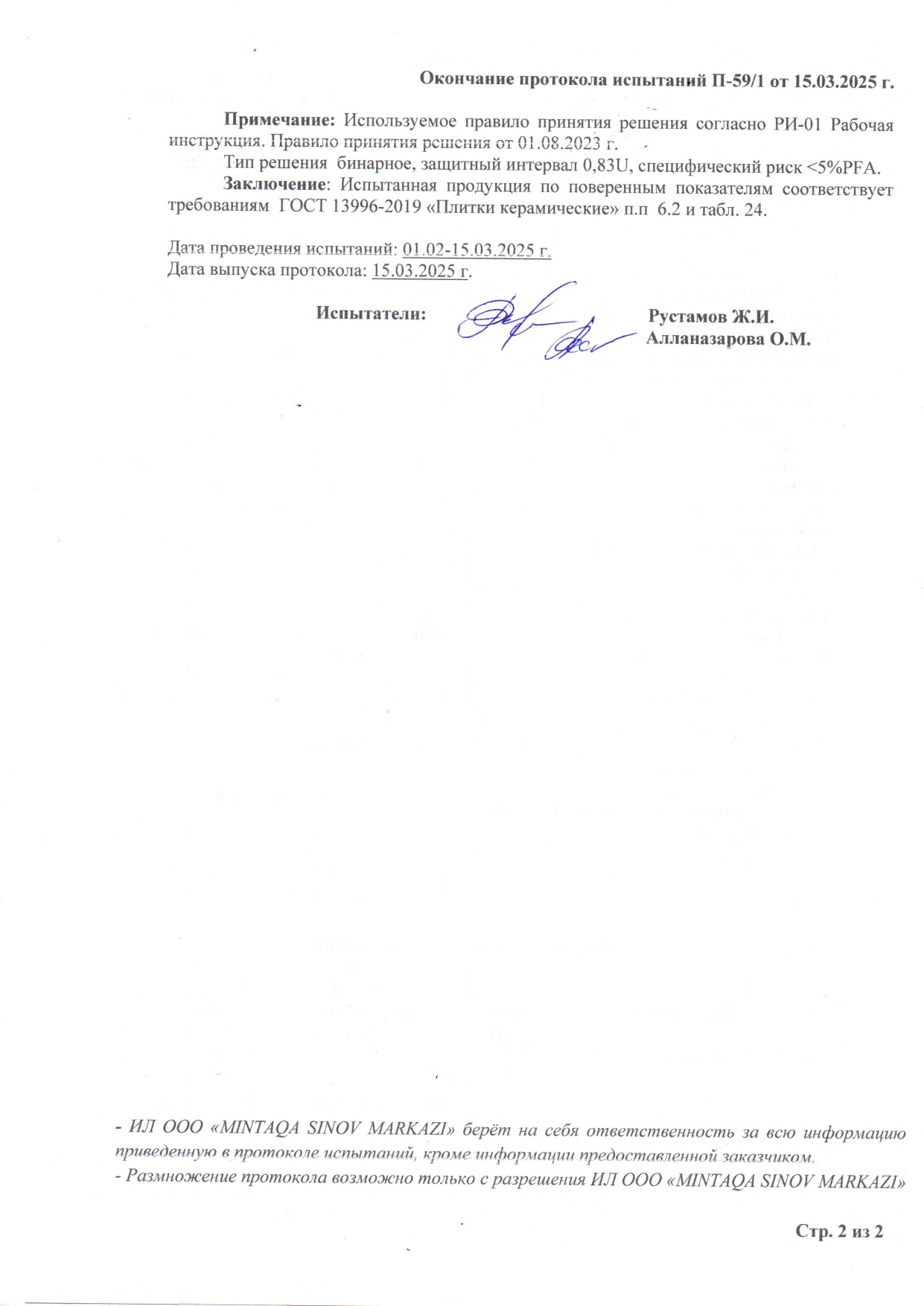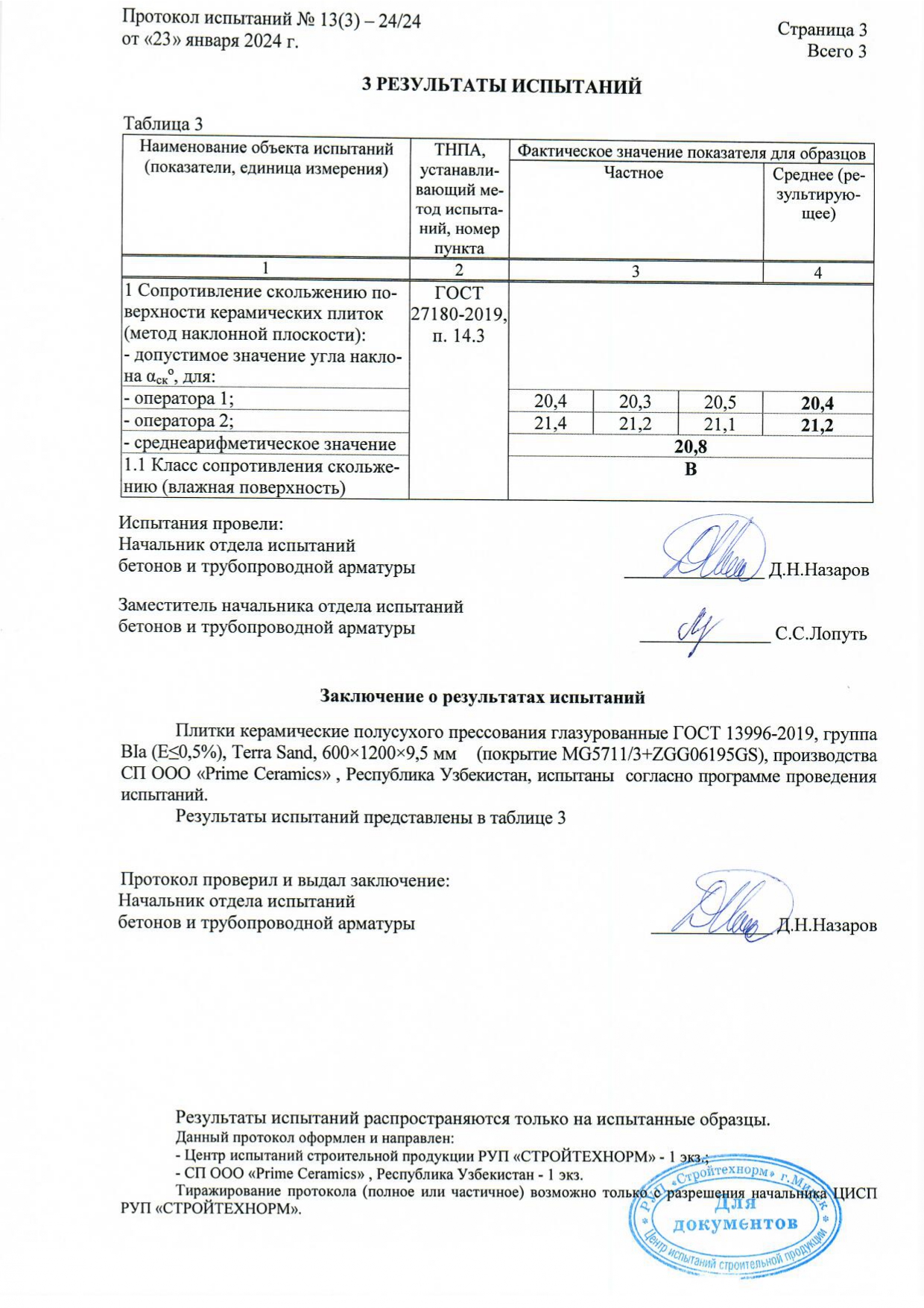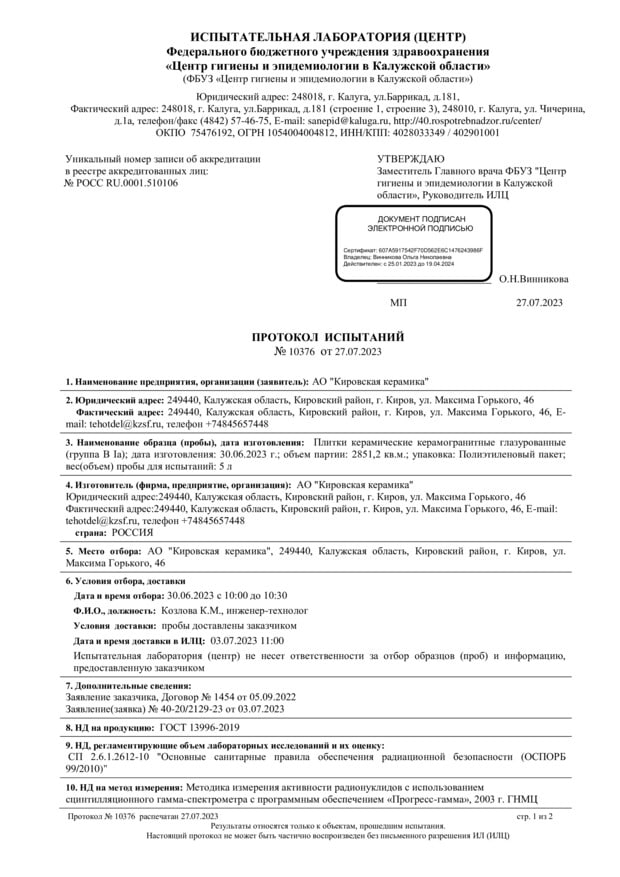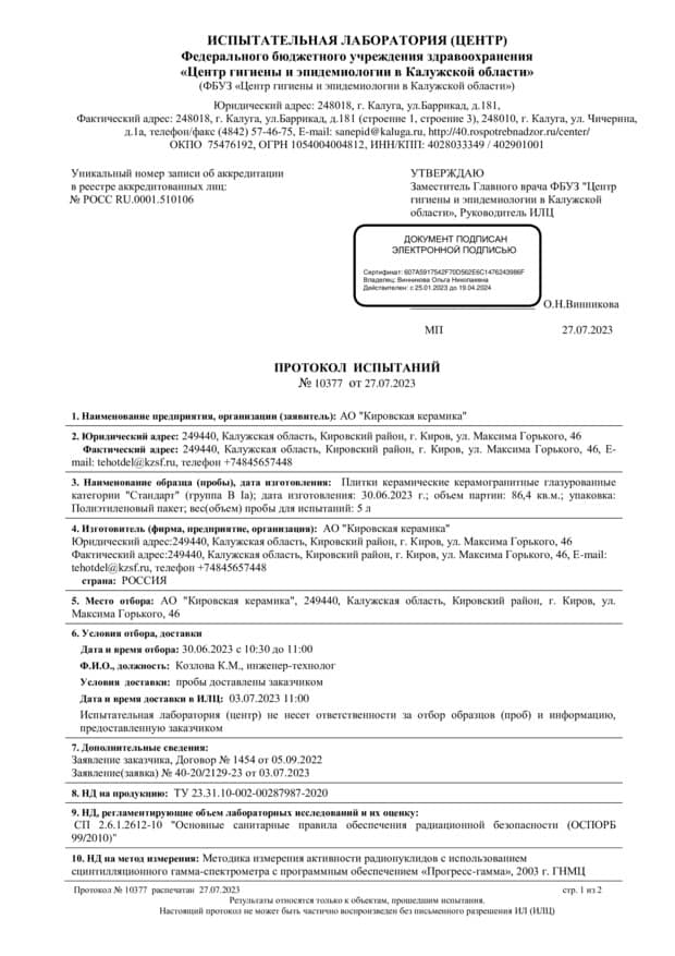 Протокол испытаний