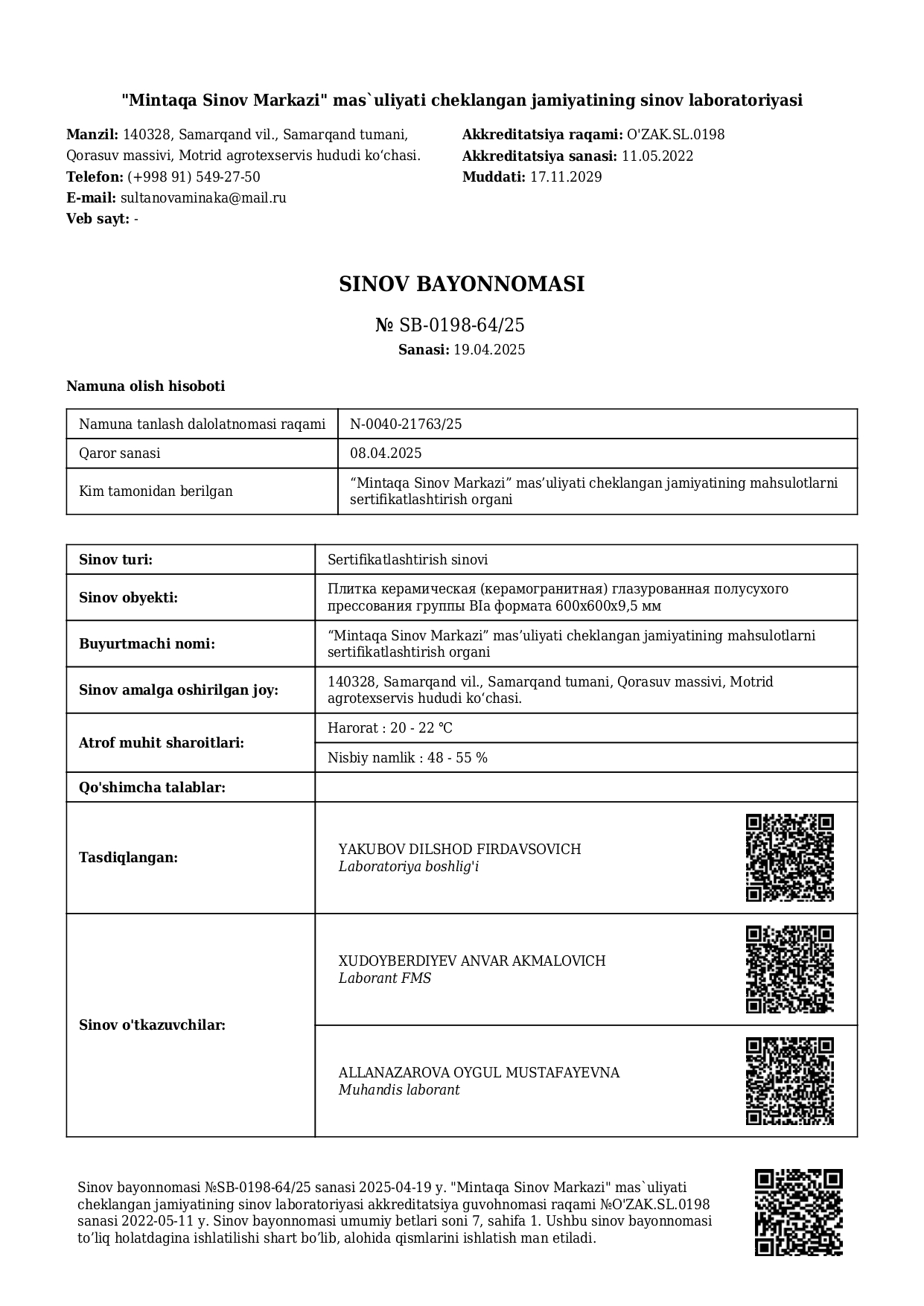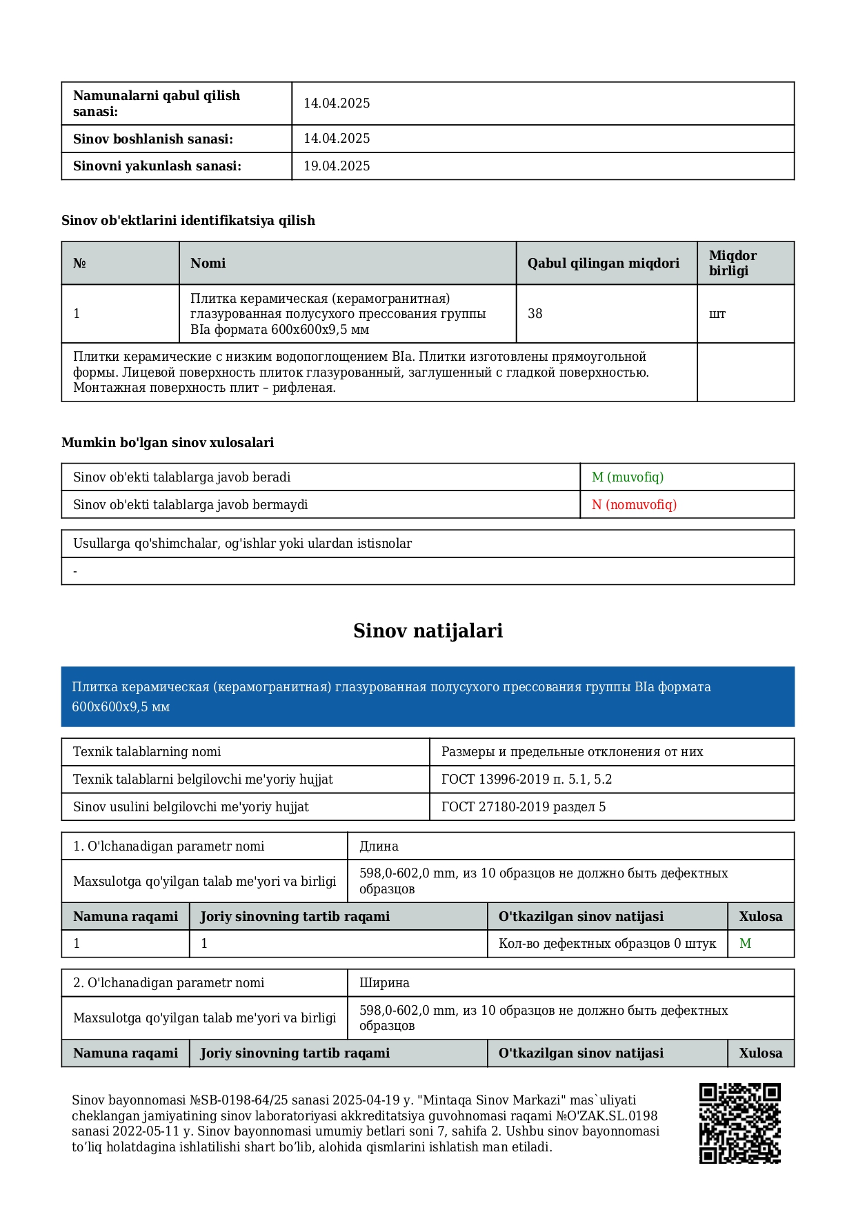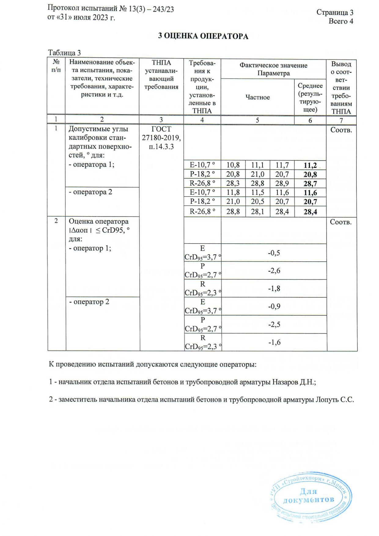 Протокол испытаний