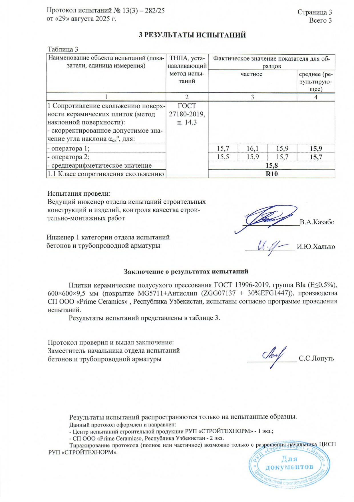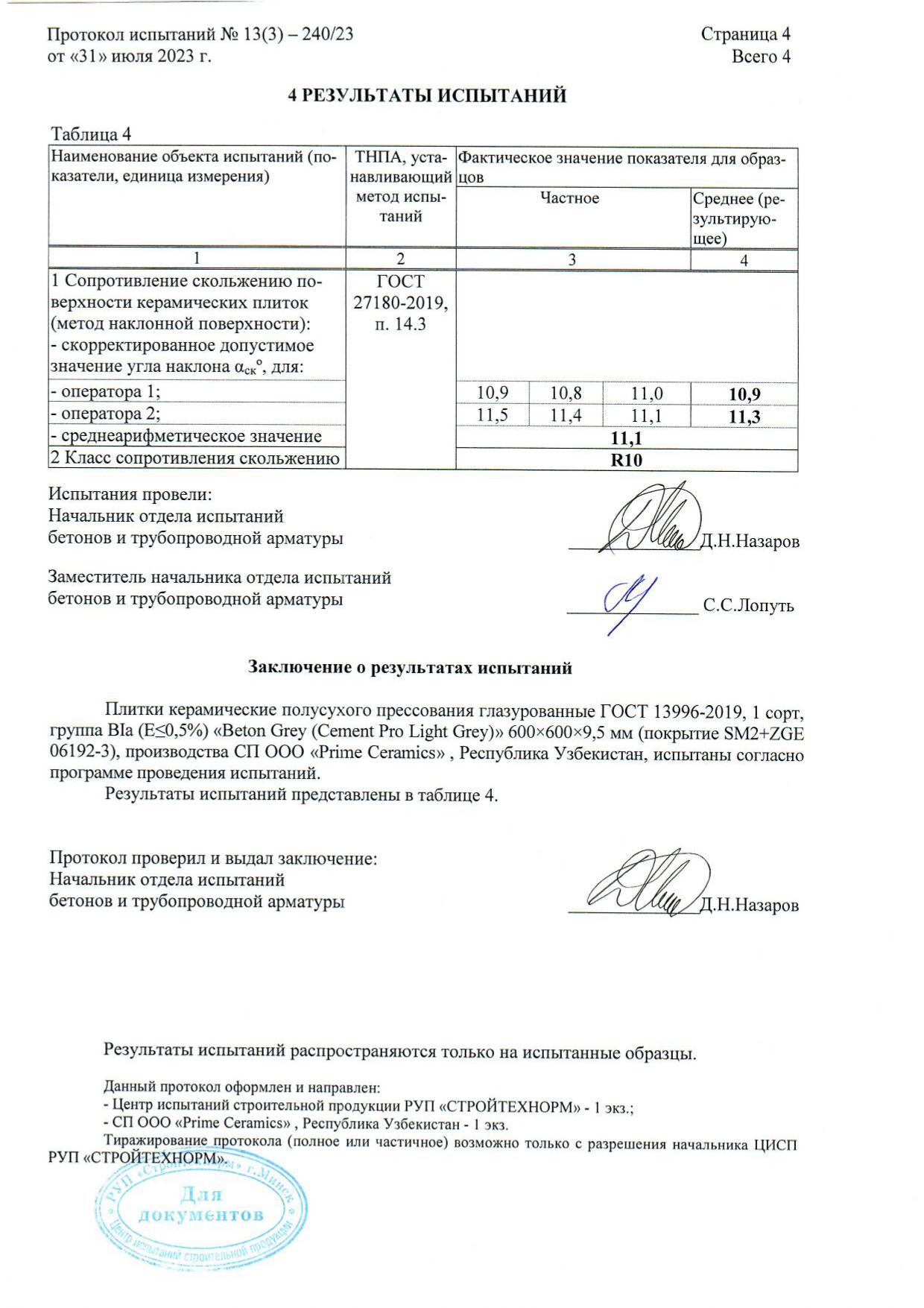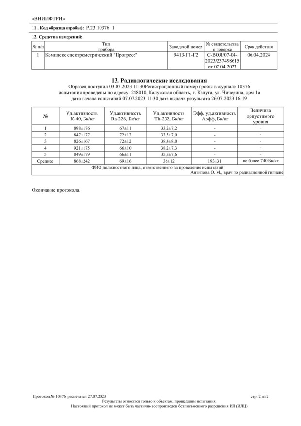 Протокол испытаний R11